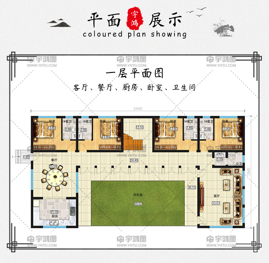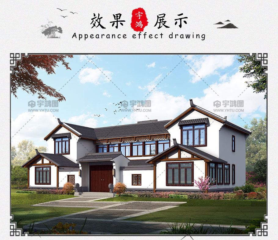 250平米農(nóng)村四合院別墅設(shè)計(jì)圖及外觀效果圖