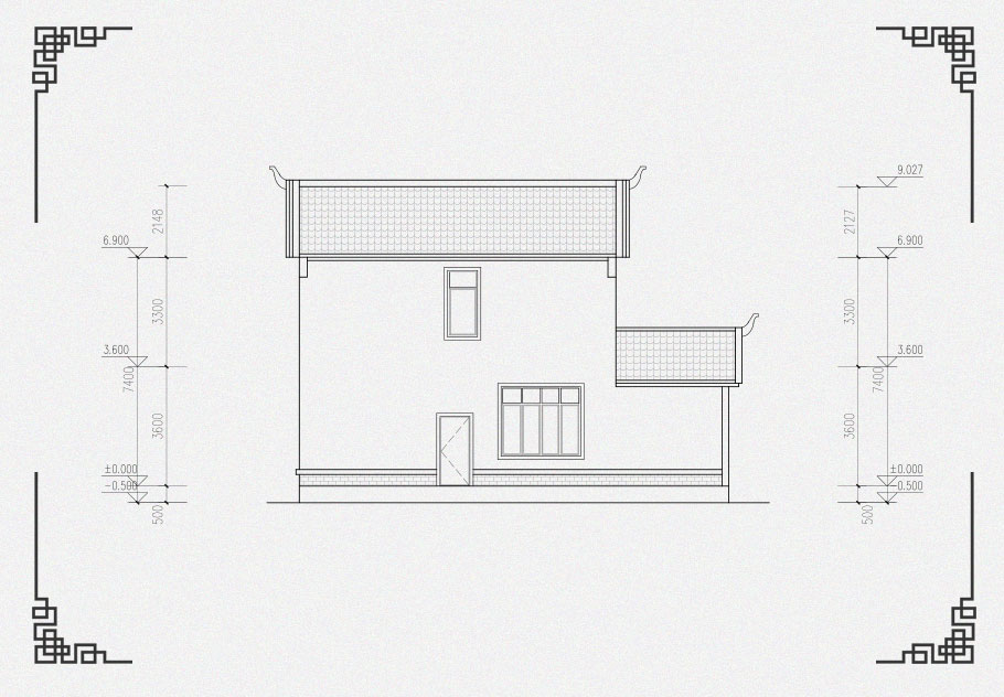 建筑立面圖:東立面圖,西立面圖,南立面圖,北立面圖,剖面圖;