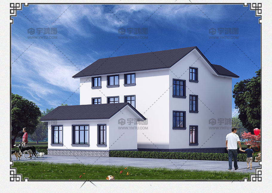 廚房單獨建的30萬三層中式帶堂屋農村房屋設計圖紙,戶型設計簡約美觀,采用坡屋頂,是農村常見的屋頂類型,三層的露臺實用性很高,可以晾曬,也可以賞景,還能打造創(chuàng)意屋頂花園,營造充滿生機的居住環(huán)境。外墻采淡白色真石漆裝飾,四面開設窗戶,室內通透采光,施工難度不高,成本也不高,特別適合普通農村家庭建造。