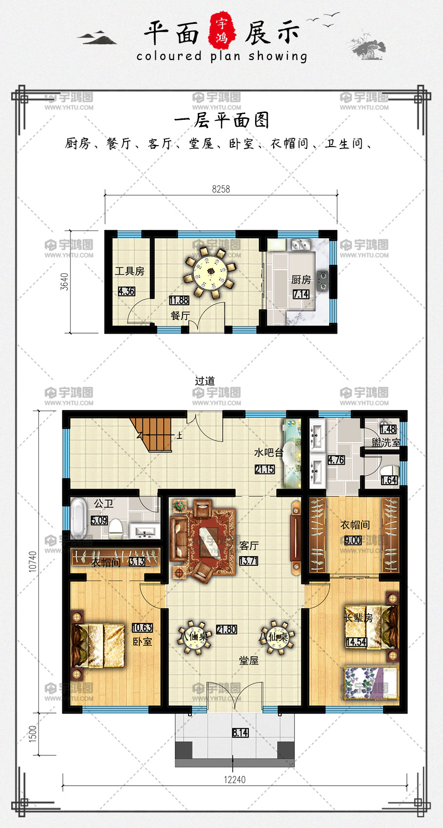 廚房單獨建的30萬三層中式帶堂屋農村房屋設計圖紙