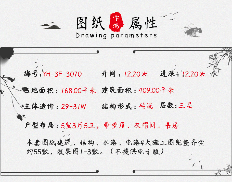 成品圖紙>廚房單獨建的30萬三層中式帶堂屋農村房屋設計圖紙