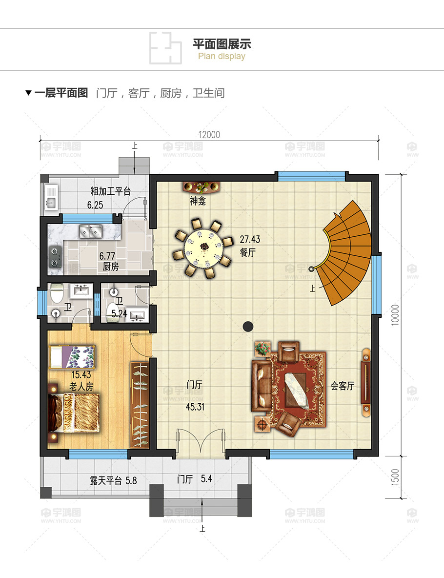 開間:12米 進深:11.5米 占地面積:120平方米 建筑面積:298.72平方米