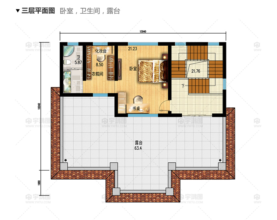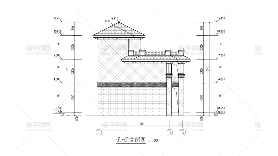 風格:歐式 | 層數:三層 | 結構形式:磚混結構 | 圖紙編號:YH-A-3031 |