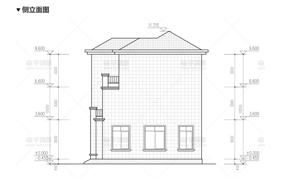 風格:歐式 | 層數:三層 | 結構形式:框架結構 | 圖紙編號:YH-A-3087 |