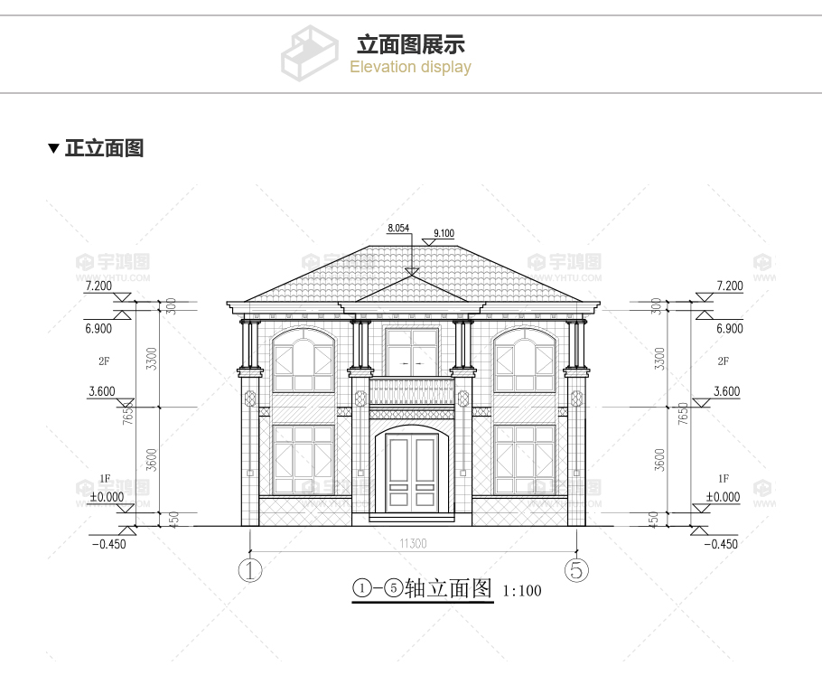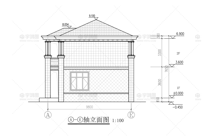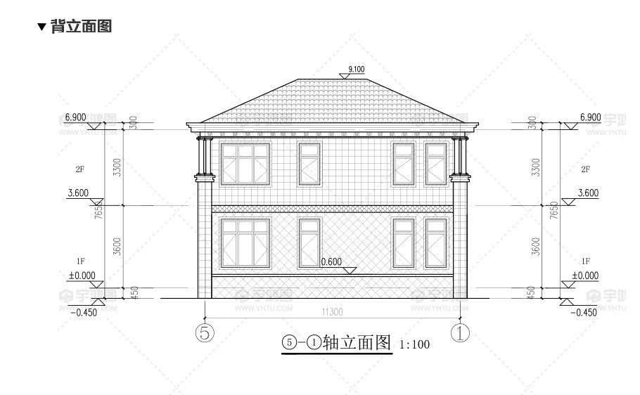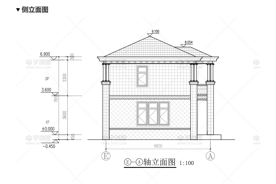 建筑立面圖:東立面圖,西立面圖,南立面圖,北立面圖,剖面圖;