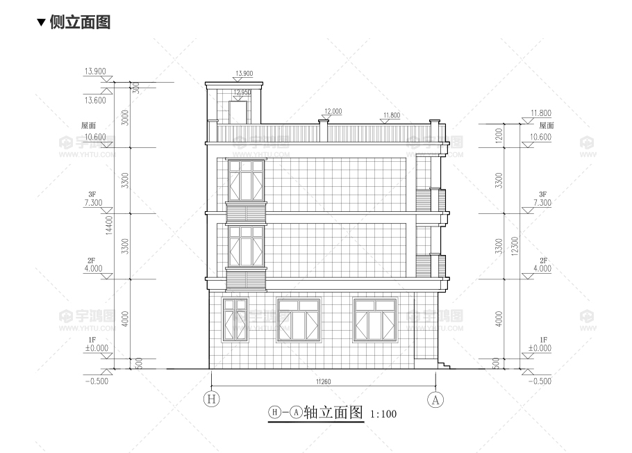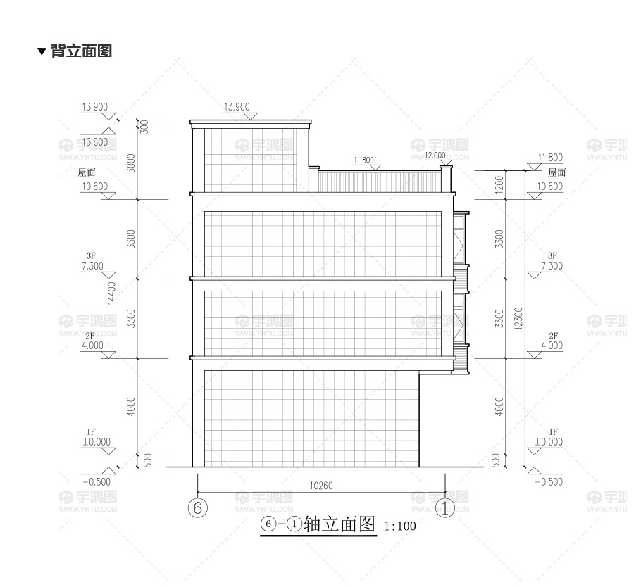 建筑立面圖:東立面圖,西立面圖,南立面圖,北立面圖,剖面圖;