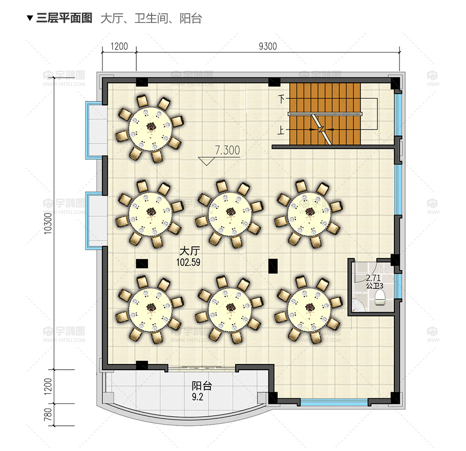 建筑平面圖:一層平面圖,二層平面圖,三層平面圖;