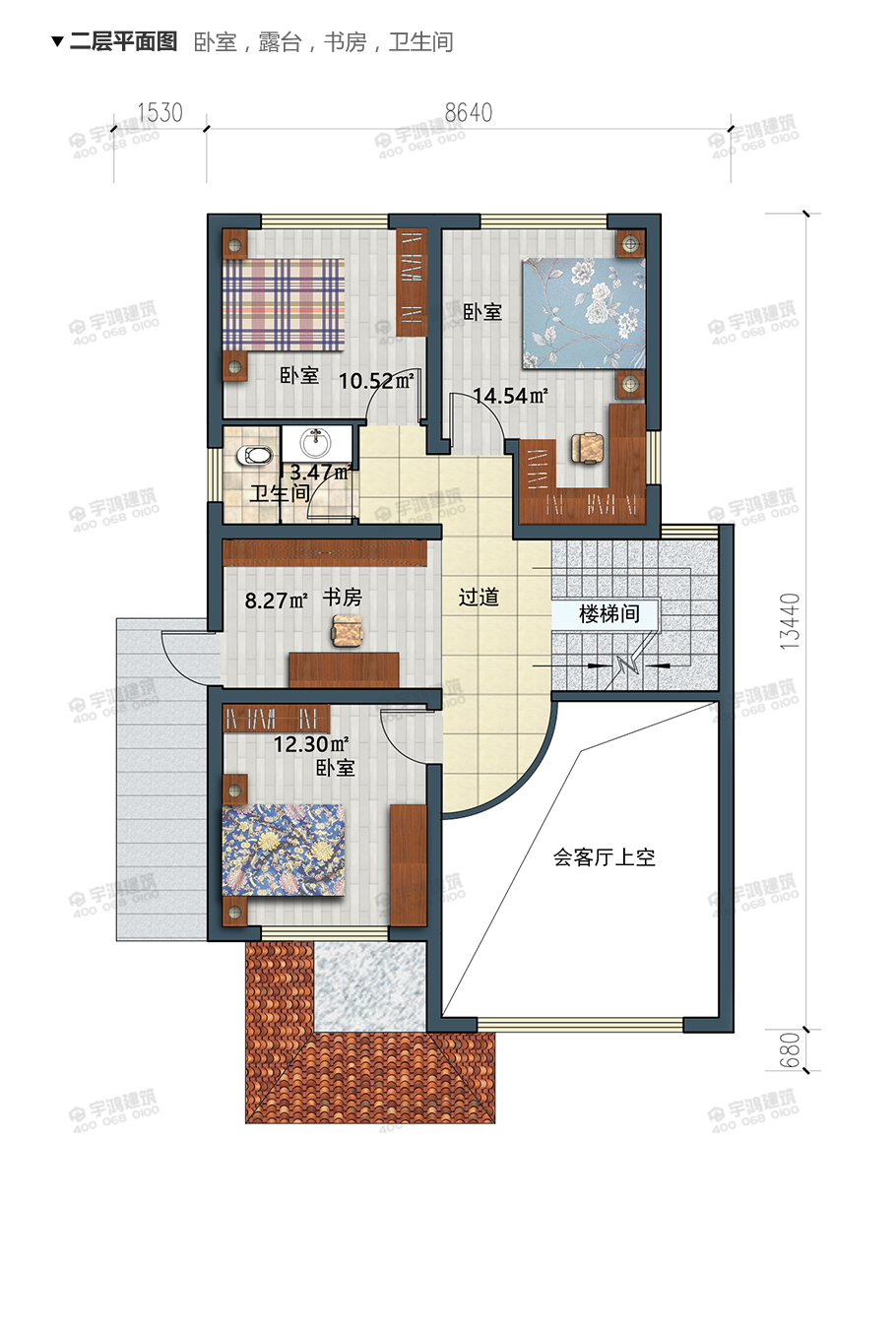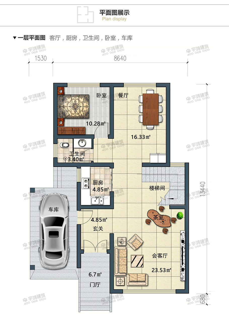 10x13米帶車庫書房鄉村別墅設計圖紙