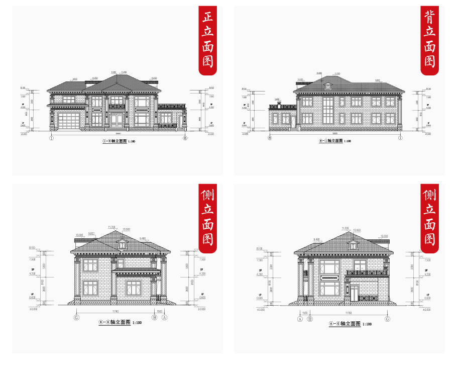 | 建筑圖: | 建筑平面圖:一層平面圖,二層平面圖; 建筑立面圖:東立面圖,西立面圖,南立面圖,北立面圖,剖面圖; 大樣圖:樓梯詳圖,細部大樣,門窗大樣 |