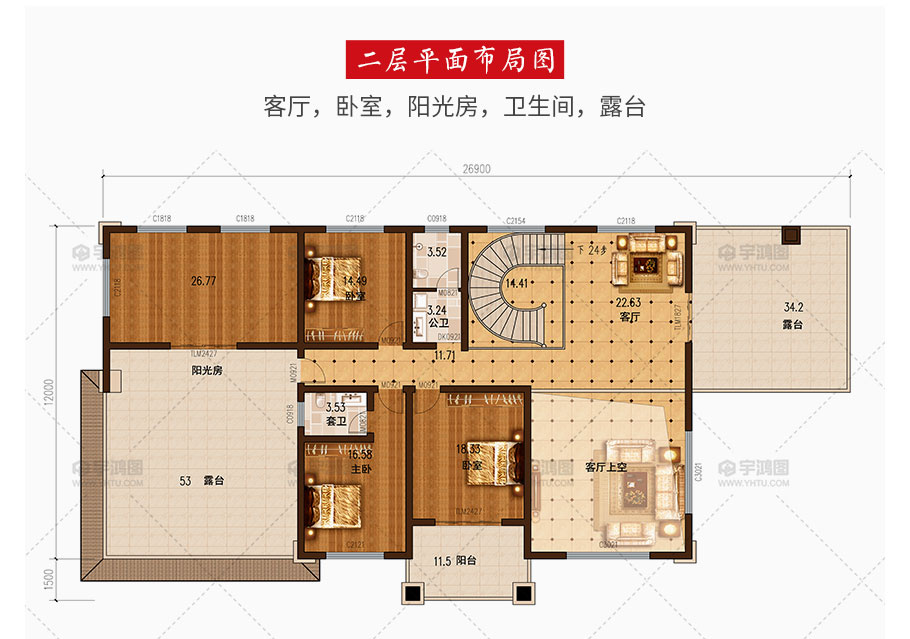 | 風格:新中式 | 層數:二層 | 結構形式:磚混結構 | 圖紙編號:YH-A-2117 |