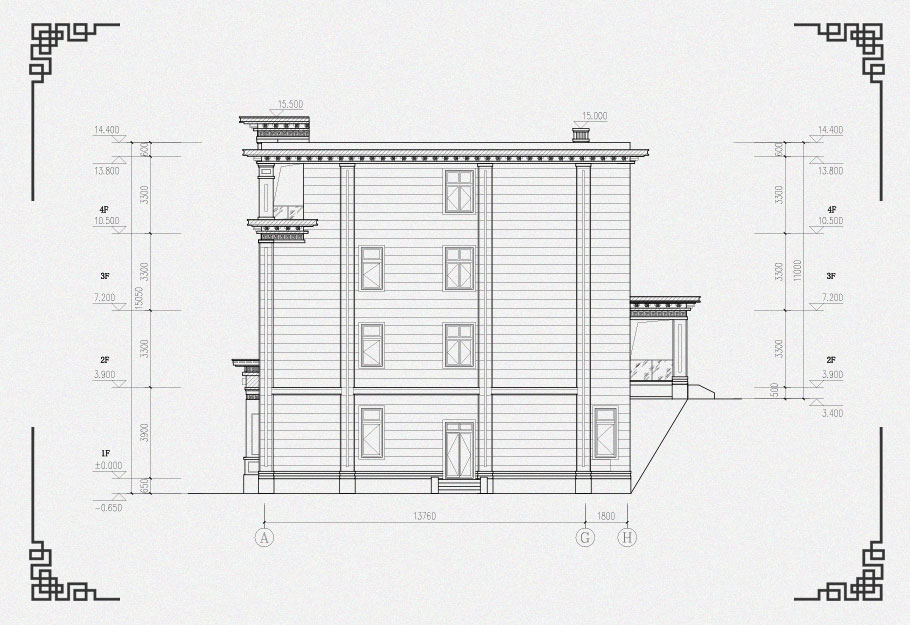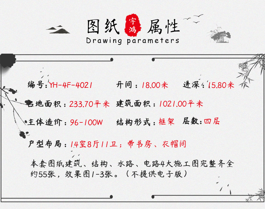 230平四層中式框架別墅設(shè)計圖紙