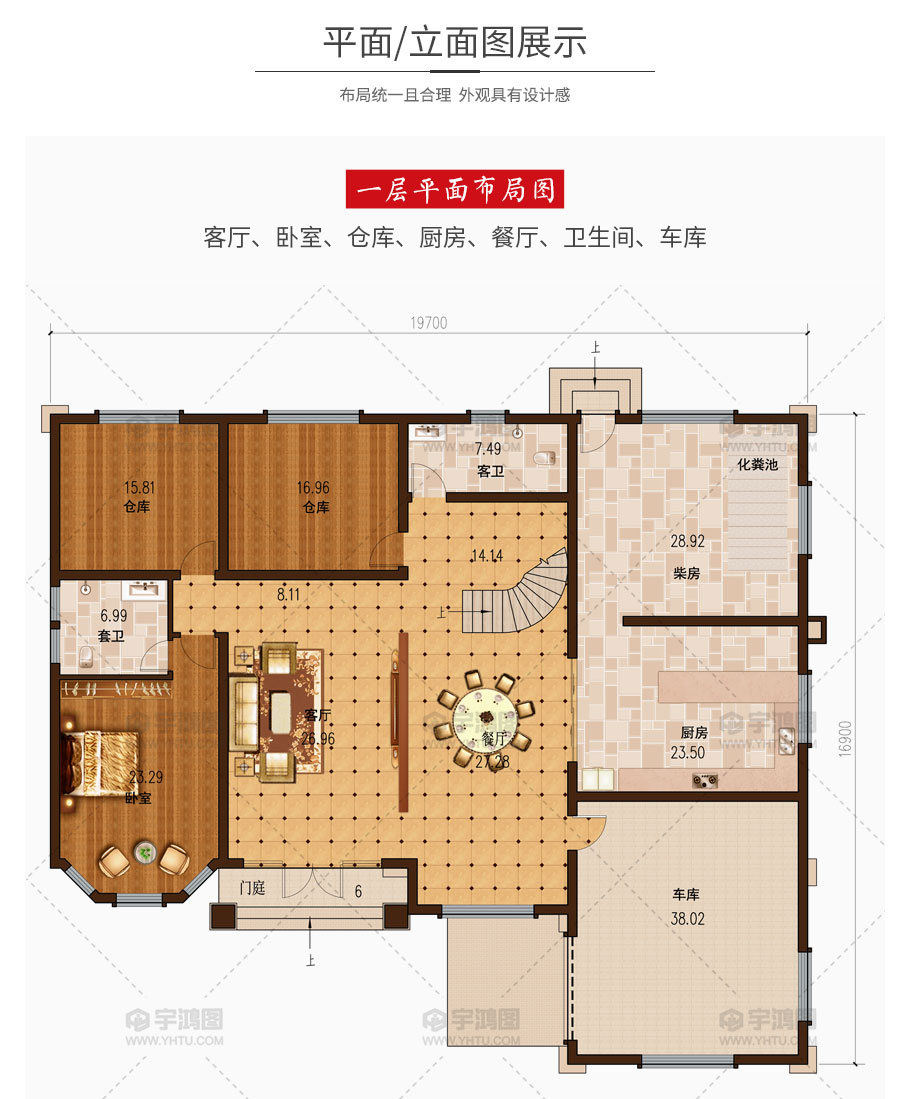 建筑平面圖:一層平面圖,二層平面圖;