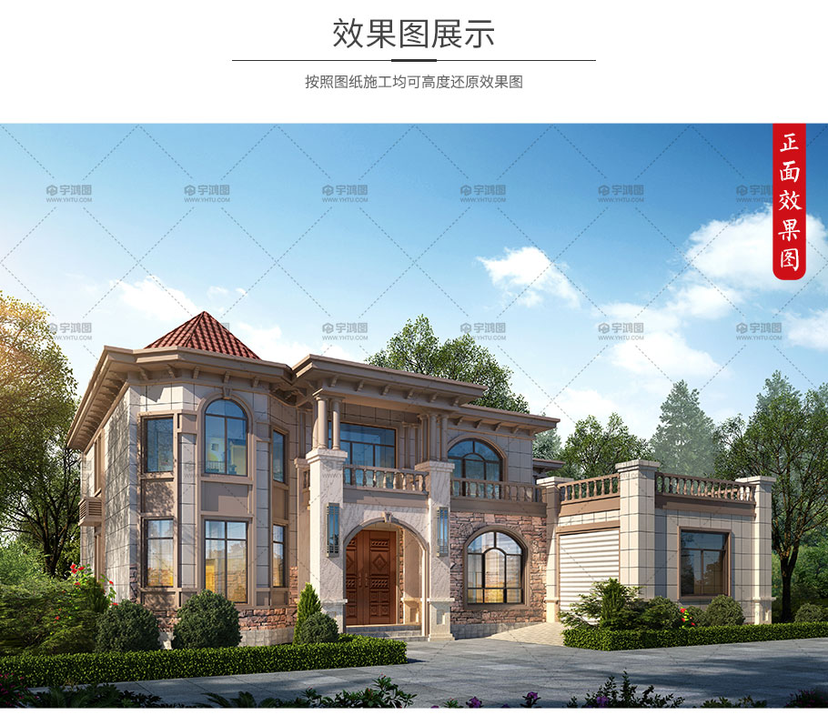 兩層帶車庫魚池別墅設(shè)計(jì)效果圖