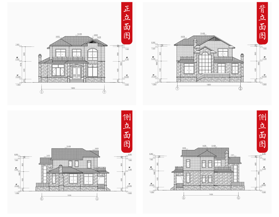| 建筑圖: | 建筑平面圖:一層平面圖,二層平面圖; 建筑立面圖:東立面圖,西立面圖,南立面圖,北立面圖,剖面圖; 大樣圖:樓梯詳圖,細(xì)部大樣,門窗大樣 |