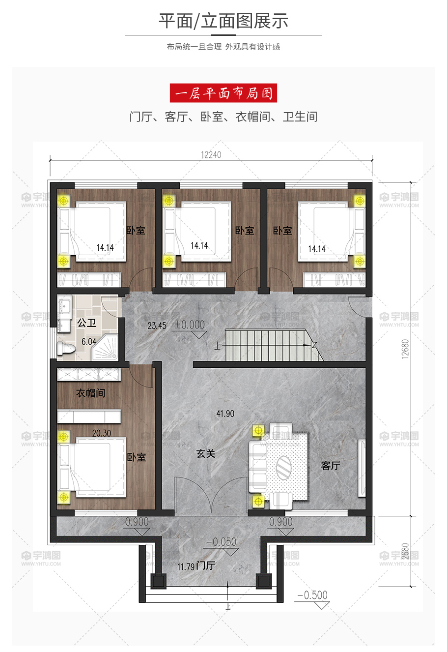 | 開間:12.24米 | 進深:15.2米 | 占地面積:155.2平方米 | 建筑面積:328平方米 |