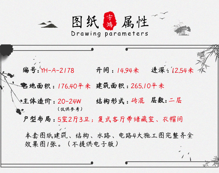 | 風(fēng)格:中式 | 層數(shù):二層 | 結(jié)構(gòu)形式:磚混結(jié)構(gòu) | 圖紙編號(hào):YH-A-2178 |