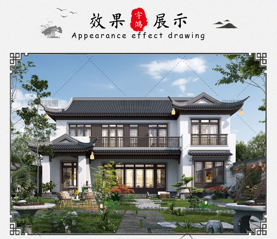 成品圖紙>新農(nóng)村中式時(shí)尚二層別墅設(shè)計(jì)圖紙