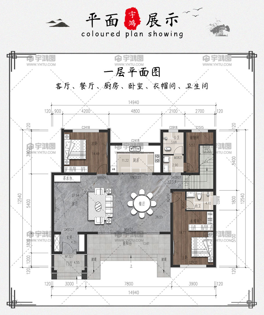 | 開間:14.94米 | 進(jìn)深:12.54米 | 占地面積:176.4平方米 | 建筑面積:265.1平方米 |