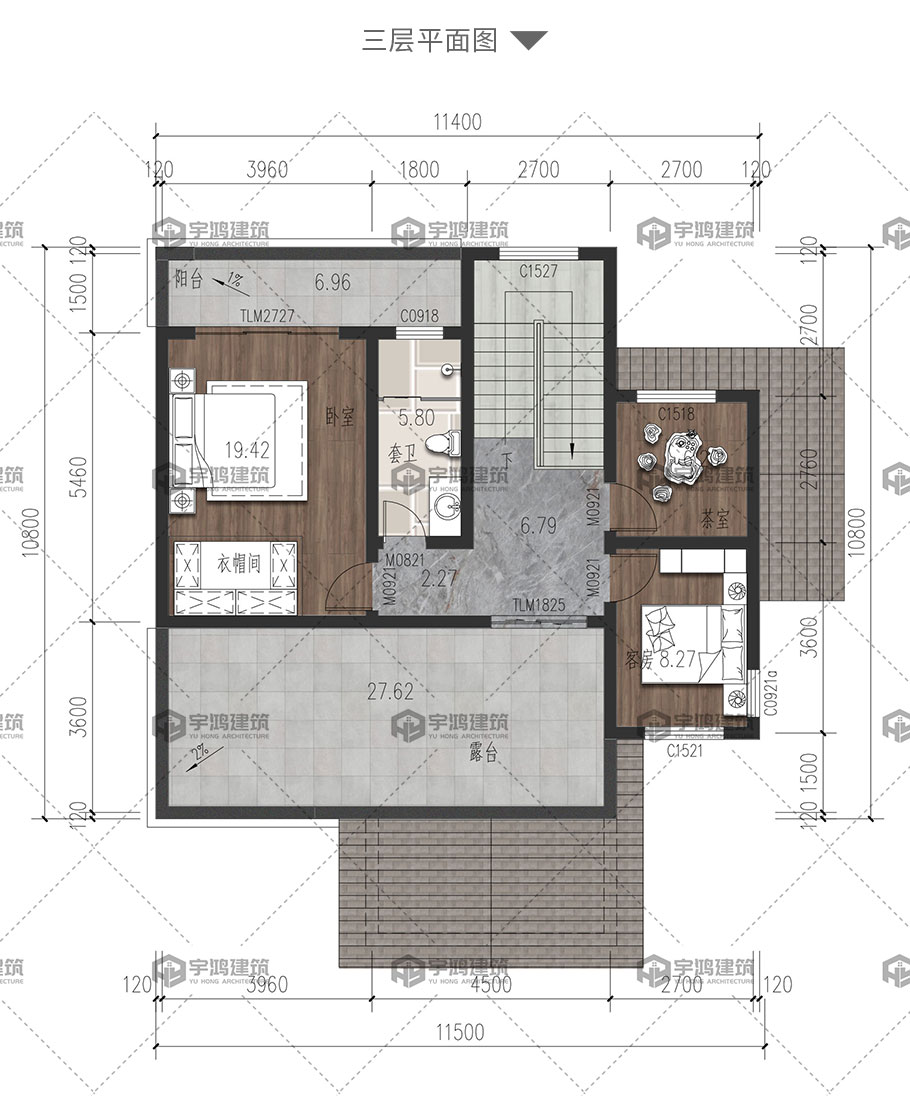風格:新中式 | 層數:三層 | 結構形式:磚混結構 | 圖紙編號:YH-A-3192 |