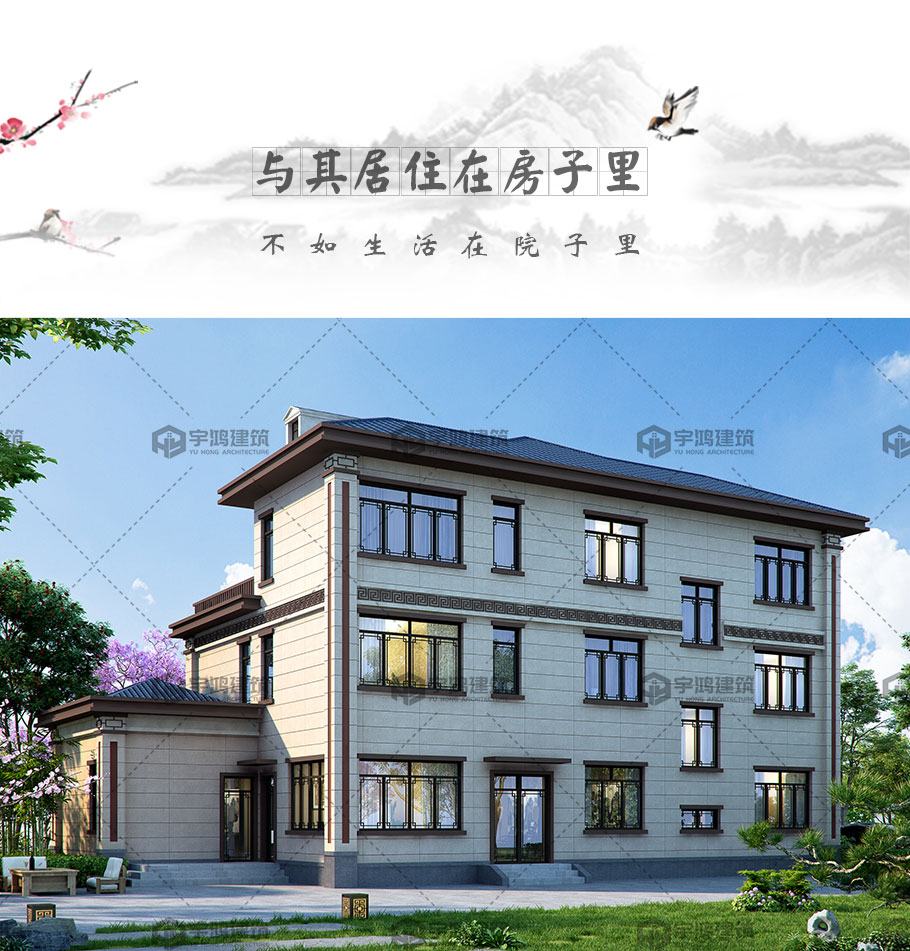 新款新中式三層農(nóng)村別墅設(shè)計效果圖