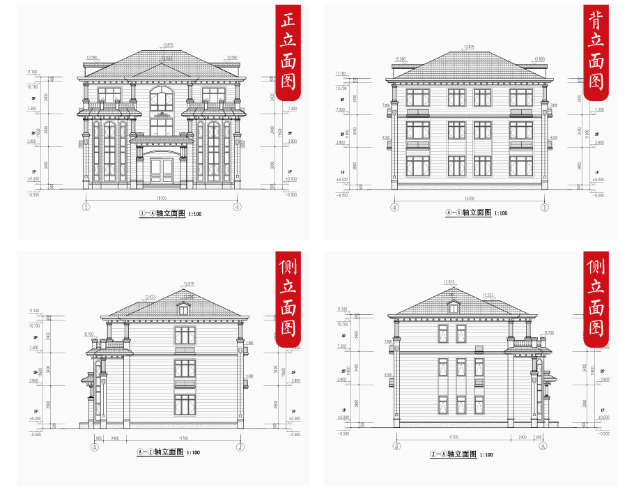 建筑圖: | 建筑平面圖:一層平面圖,二層平面圖,三層平面圖; 建筑立面圖:東立面圖,西立面圖,南立面圖,北立面圖,剖面圖; 大樣圖:樓梯詳圖,細部大樣,門窗大樣 |