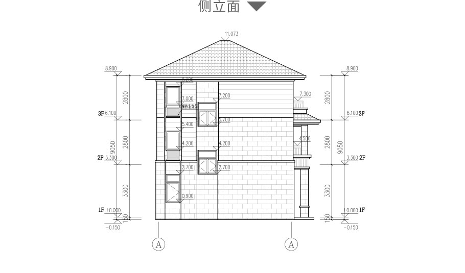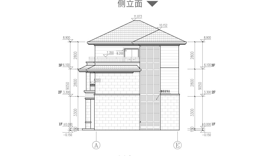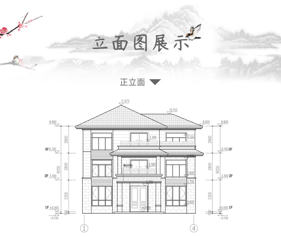 建筑立面圖:東立面圖,西立面圖,南立面圖,北立面圖,剖面圖;