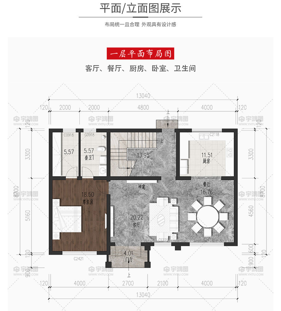 開間:13.04米 | 進深:8.7米 | 占地面積:112.18平方米 | 建筑面積:214.8平方米 |