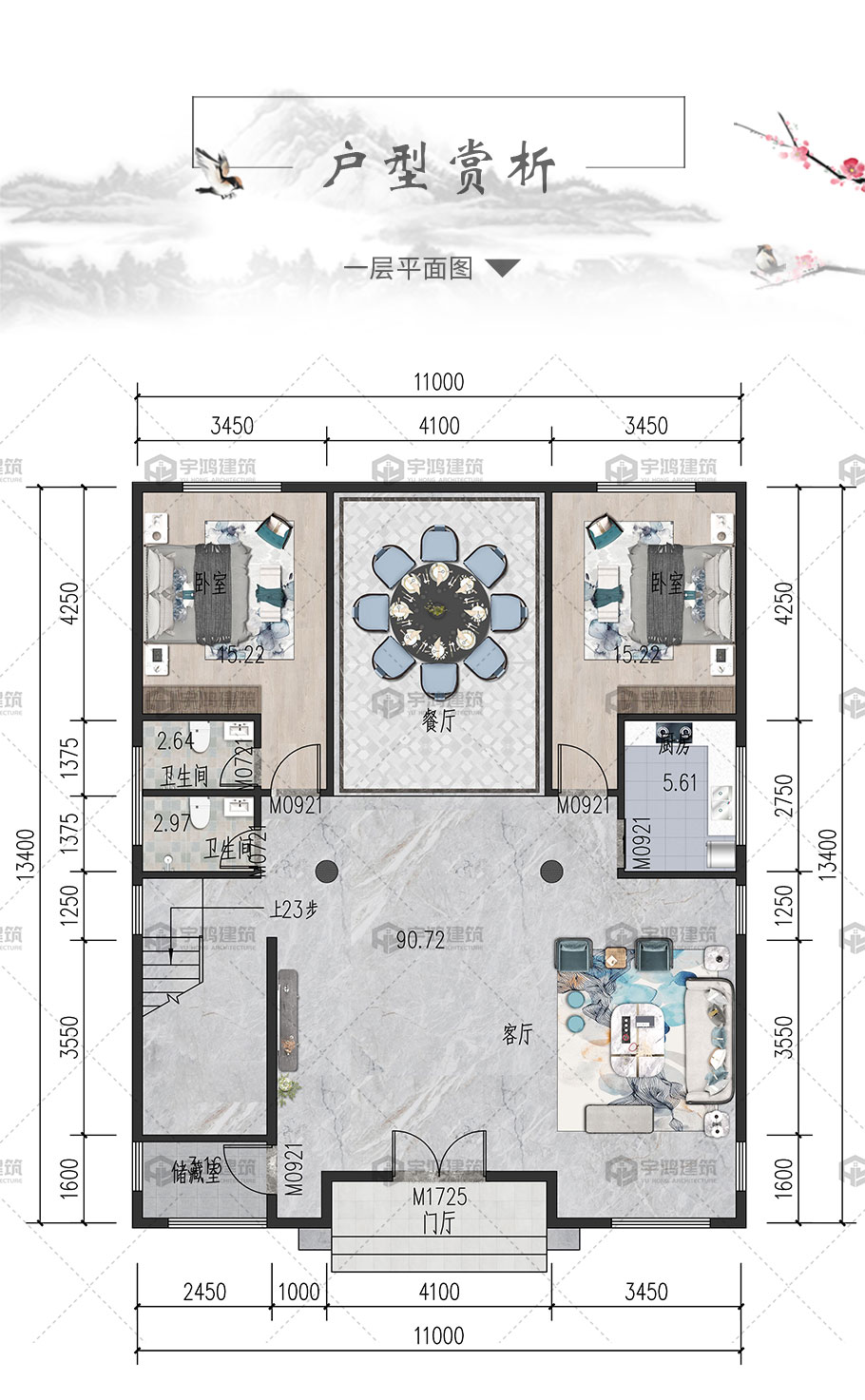 占地151平二層框架結(jié)構(gòu)新中式別墅