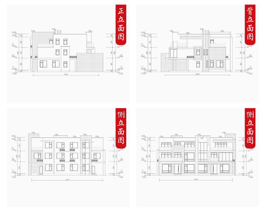 建筑平面圖:一層平面圖,二層平面圖,三層平面圖; 建筑立面圖:東立面圖,西立面圖,南立面圖,北立面圖,剖面圖; 大樣圖:樓梯詳圖,細(xì)部大樣,門窗大樣 |