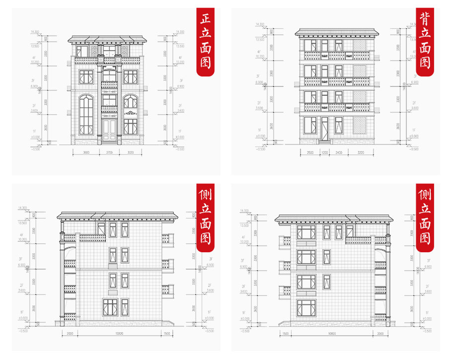 成品圖紙>四層歐式風(fēng)格別墅設(shè)計圖紙占地107平