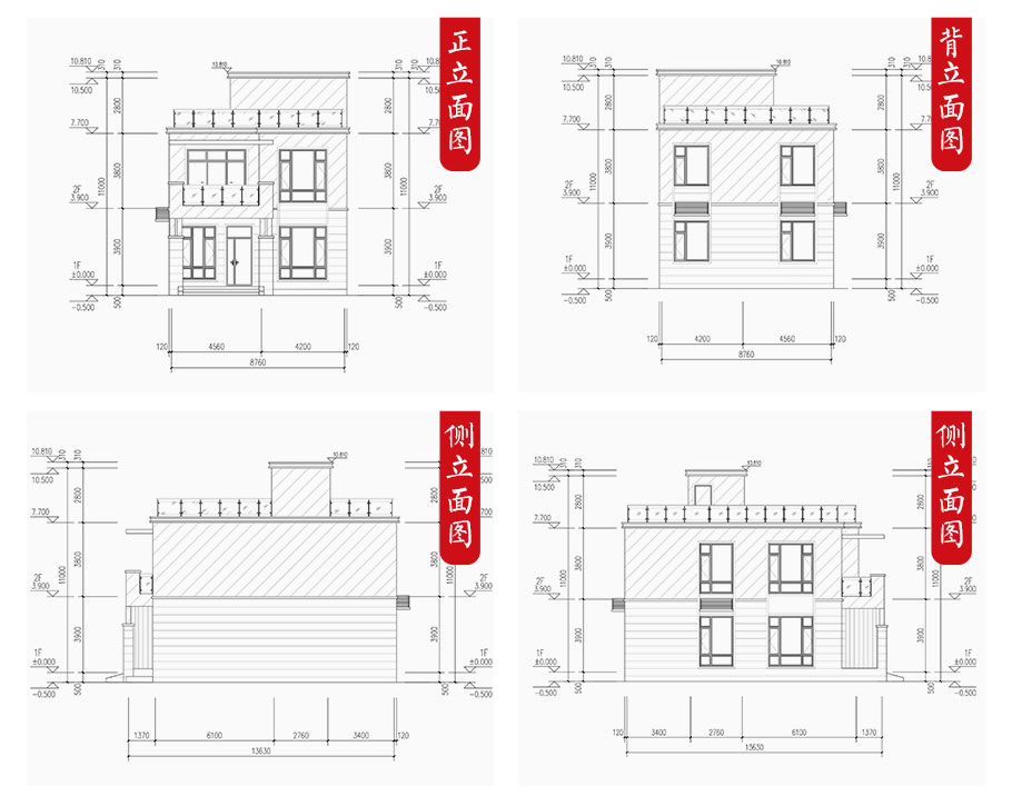 建筑平面圖:一層平面圖,二層平面圖; 建筑立面圖:東立面圖,西立面圖,南立面圖,北立面圖,剖面圖; 大樣圖:樓梯詳圖,細(xì)部大樣,門窗大樣 |