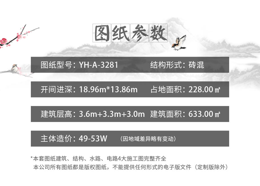 樓層給排水平面圖:一層給排水平面圖,二層給排水平面圖,三層給排水平面圖; 屋頂給排水平面圖; 衛生間排水系統圖 |