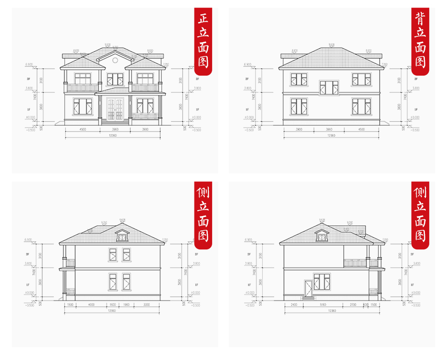| 建筑圖: | 建筑平面圖:一層平面圖,二層平面圖; 建筑立面圖:東立面圖,西立面圖,南立面圖,北立面圖,剖面圖; 大樣圖:樓梯詳圖,細部大樣,門窗大樣 |