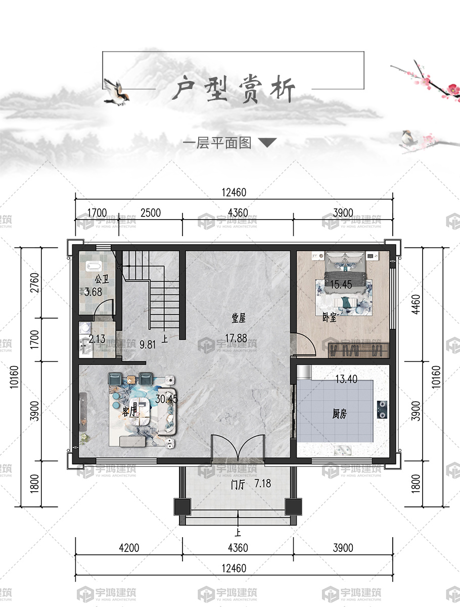 開間:12.4米 | 進深:10.16米 | 占地面積:117.8平方米 | 建筑面積:226.1平方米 |