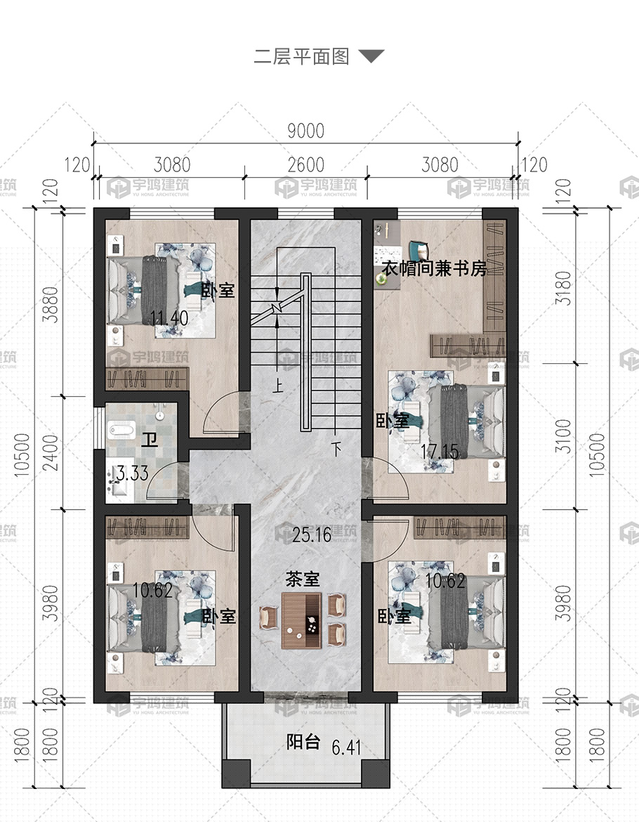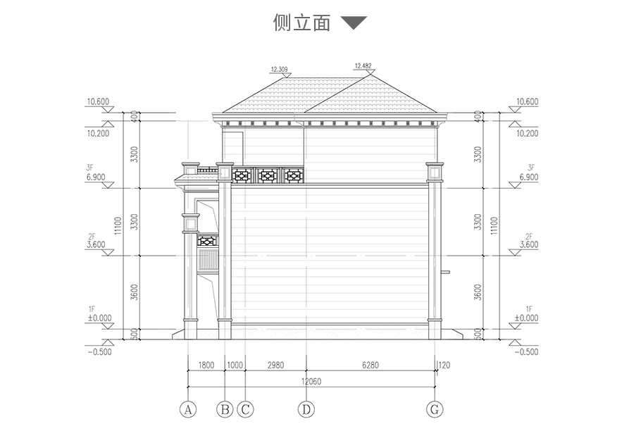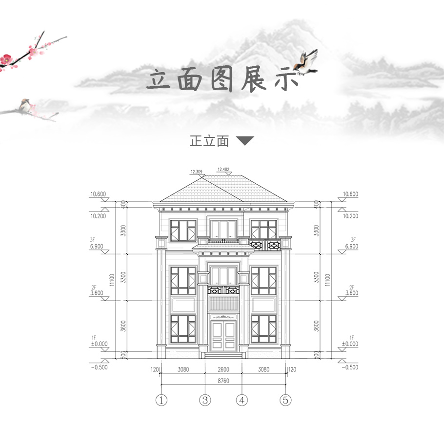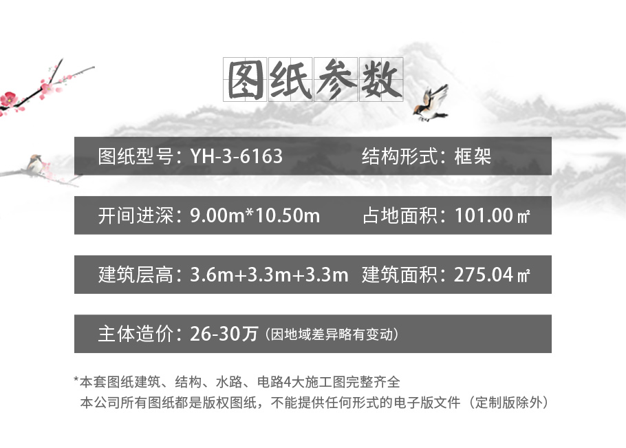 成品圖紙>占地101平三層新中式框架結(jié)構(gòu)別墅設計圖紙