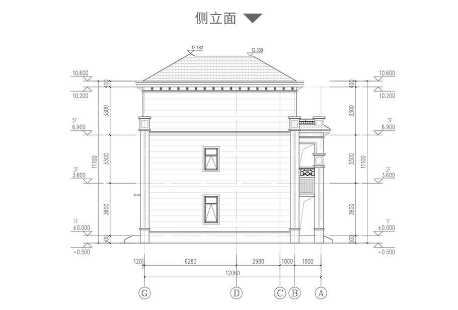 建筑平面圖:一層平面圖,二層平面圖,三層平面圖; 建筑立面圖:東立面圖,西立面圖,南立面圖,北立面圖,剖面圖; 大樣圖:樓梯詳圖,細部大樣,門窗大樣 |