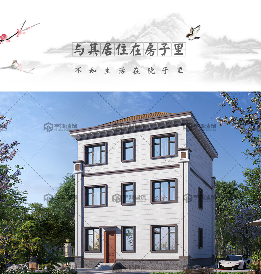 占地101平三層新中式框架結(jié)構(gòu)別墅設計圖紙