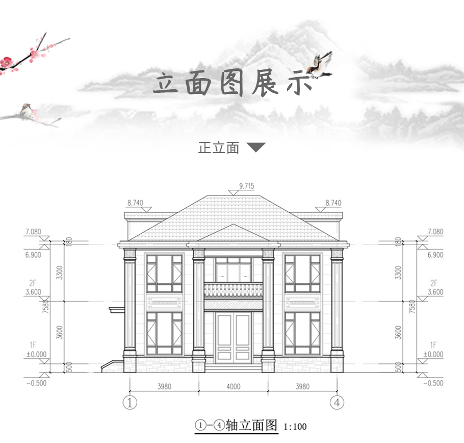 風格:新中式 層數:二層 結構形式:磚混結構 圖紙編號:YH-2-6218