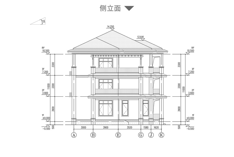 | 結構圖: | 柱施工圖:基礎平面圖,一層柱平面圖,二層柱平面圖,三層柱平面圖,屋頂柱平面圖; 梁施工圖:一層梁平法施工圖,二層梁平法施工圖,三層梁平法施工圖,頂層梁平法施工圖; 板施工圖:層板平法施工圖,二層板平法施工圖,三層板平法施工圖,屋頂層板平法施工圖 詳圖:樓梯平面,樓梯剖面圖; 其他:坡屋面施工說明圖一,坡屋面施工說明圖二,坡屋面施工說明圖三 |