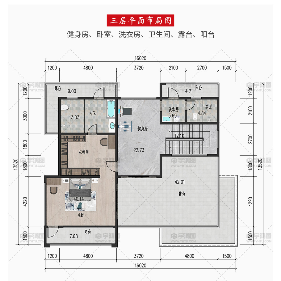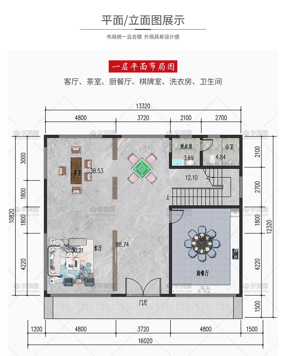 | 開間:16.02米 | 進深:12.32米 | 占地面積:148.5平方米 | 建筑面積:435.5平方米 |