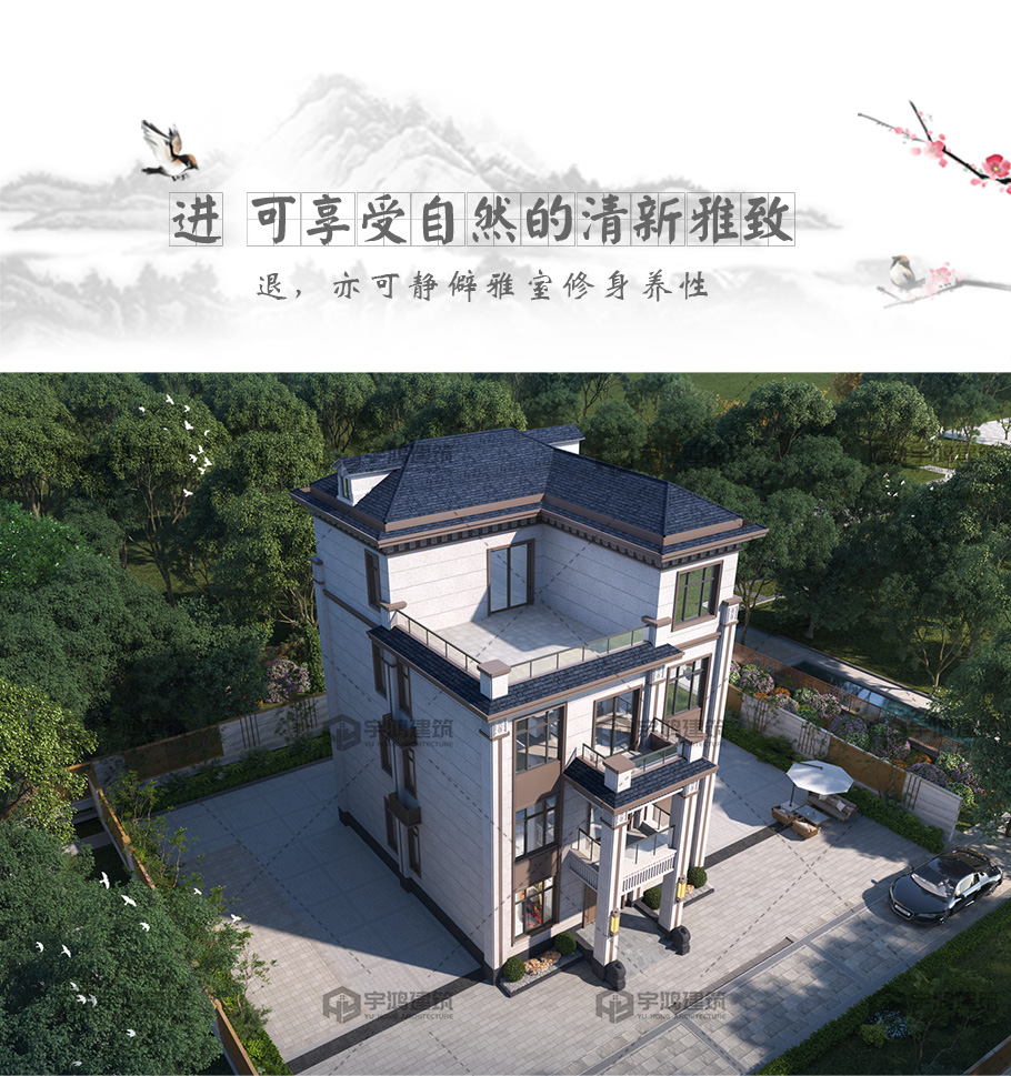 四層新中式框架結(jié)構(gòu)別墅占地120平