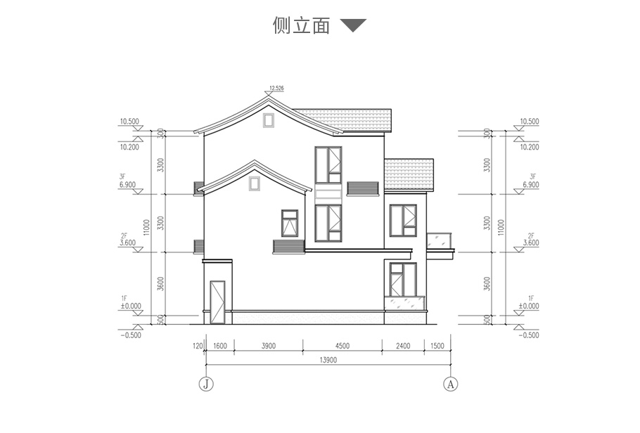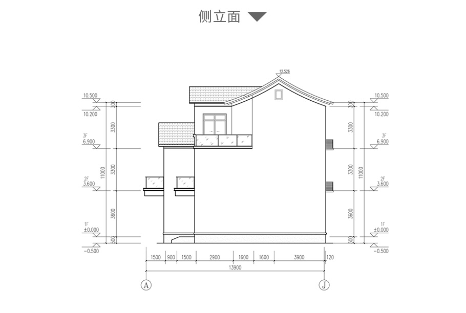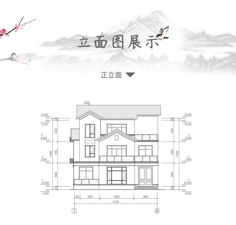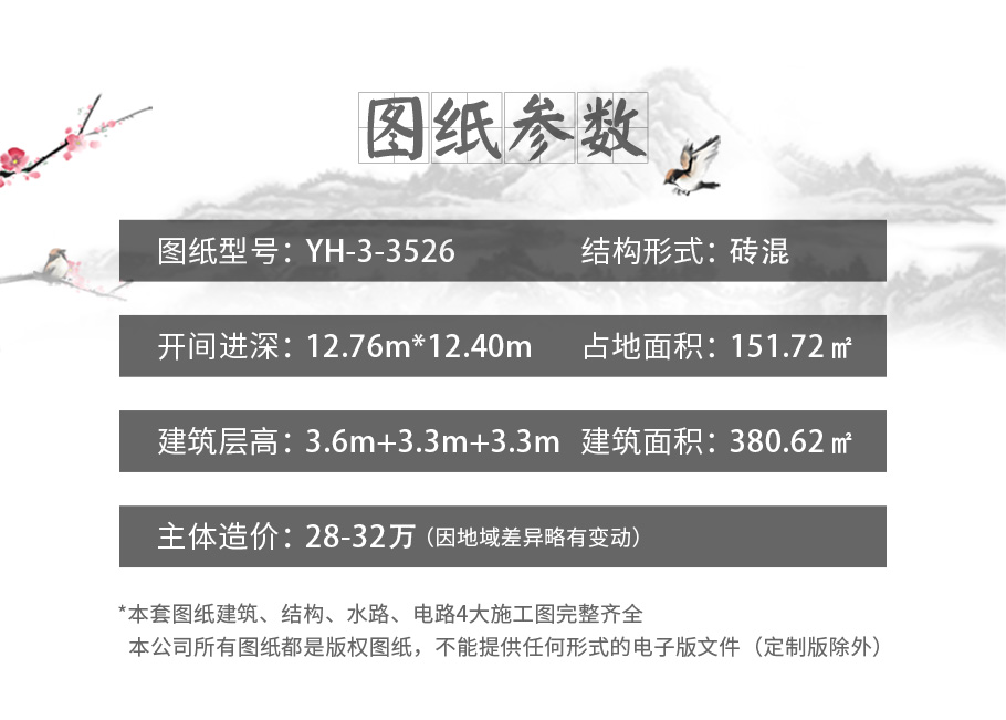 | 風格:新中式 | 層數:三層 | 結構形式:磚混結構 | 圖紙編號:YH-3-3526 |