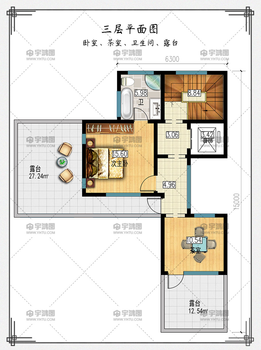 本戶型為142平三層新中式帶庭院別墅設計圖,占地142平方米,這棟古色古香的帶庭院別墅,屋頂采用傳統中式屋頂的設計形式,給人宏大的氣勢,連廊與庭院的結合,整個建筑又透露出清新淡雅、詩情畫意之感。別墅左右留有庭院,視野開闊,庭院開敞,可活動、休閑、停車,種樹。