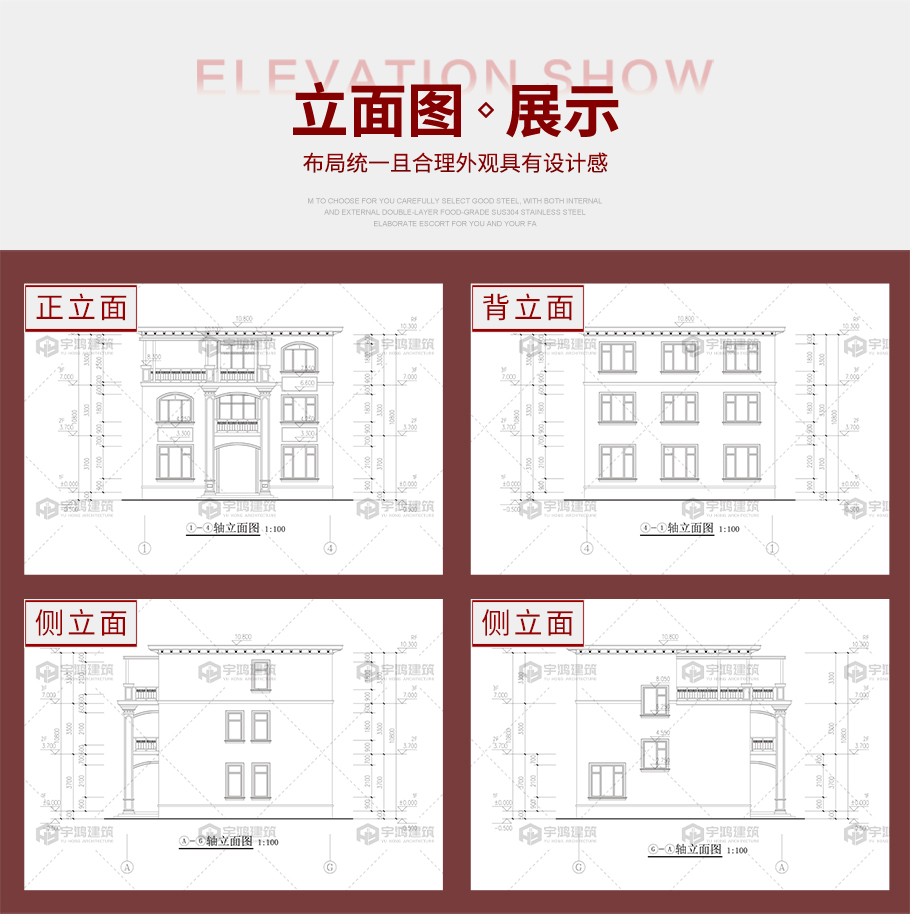 建筑圖: | 建筑平面圖:一層平面圖,二層平面圖,三層平面圖; 建筑立面圖:東立面圖,西立面圖,南立面圖,北立面圖,剖面圖; 大樣圖:樓梯詳圖,細部大樣,門窗大樣 |