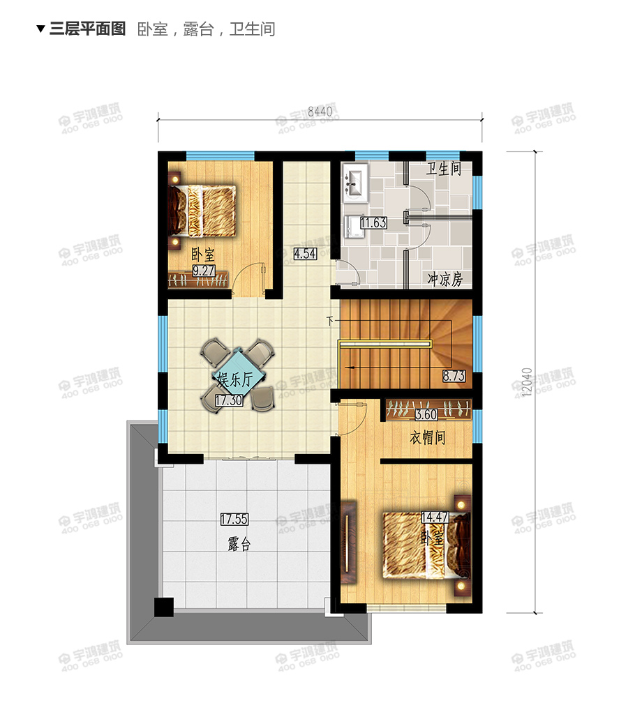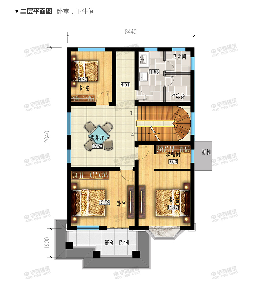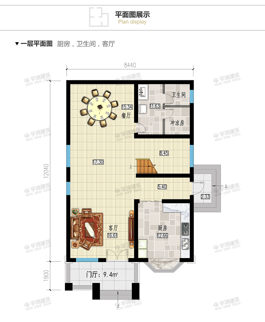 | 開間:8.44米 | 進深:13.94米 | 占地面積:101.6平方米 | 建筑面積:327.3平方米 |